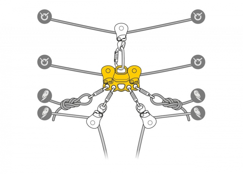 Pojazdová dvojitá kladka kombinuje dve kladky a kotviacu dosku v jednej zostave. Je určená hlavne na záchranu na lanových traverzoch.