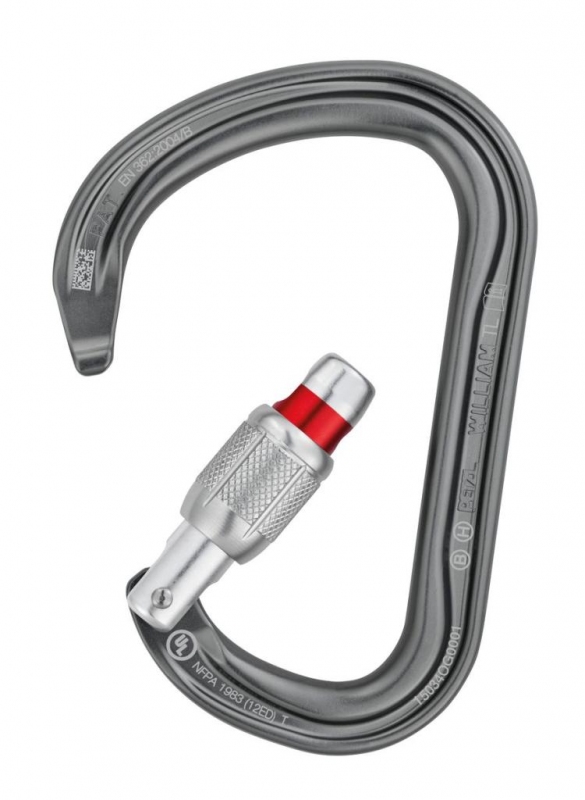 Ľahká asymetrická karabína WILLIAM je vyrobená z hliníka. Je to veľká HMS karabína tvaru hrušky, ktorá je vhodná na jednoduché pripojenie viacerých prostriedkov. Jej plynulý dizajn vnútornej časti a systém zámku Keylock uľahčujú manipuláciu. Karabína WILLIAM je k dispozícii v troch verziách poistky zámku. WILLIAM je možné použiť s deliacou priečkou CAPTIV, ktorá udržuje karabínu v správnej polohe, zaťaženú v hlavnej pozdĺžnej osi, čo je vhodné pre použitie so zlaňovacím zariadením.
